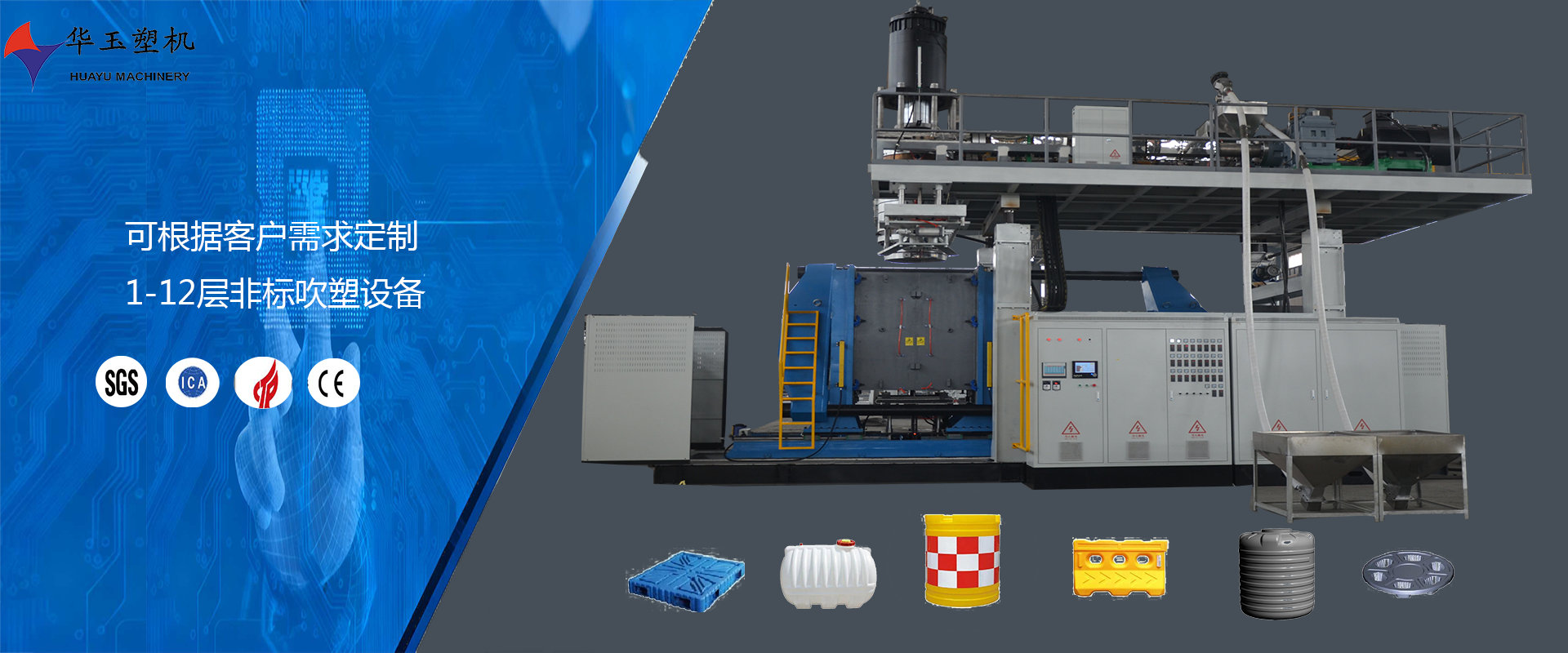 濰坊市華玉塑料機(jī)械有限公司創(chuàng)辦于貳零零貳年,是超大型全自動(dòng)中空吹塑設(shè)備專(zhuān)業(yè)生產(chǎn)廠(chǎng)家。公司融合國(guó)內(nèi)外先進(jìn)技術(shù)和理念,專(zhuān)業(yè)設(shè)計(jì)、生產(chǎn)、銷(xiāo)售一層到十層的大型全自動(dòng)中空成型機(jī)組。我公司生產(chǎn)的各型號(hào)吹塑機(jī)可生產(chǎn)50升到30,000升的各類(lèi)塑料水桶,噸桶、雙環(huán)桶、水馬、路錐、隔離墻托盤(pán)、桌板、浮筒、皮劃艇、工具箱包等中空制品。優(yōu)良的品質(zhì)、穩(wěn)定的性能、優(yōu)越的性?xún)r(jià)比使公司產(chǎn)品不僅暢銷(xiāo)國(guó)內(nèi)市場(chǎng),并出口到亞洲、東南亞、中東、歐洲、北美、南美、非洲等80多個(gè)國(guó)家和地區(qū),深受客戶(hù)的好評(píng)...